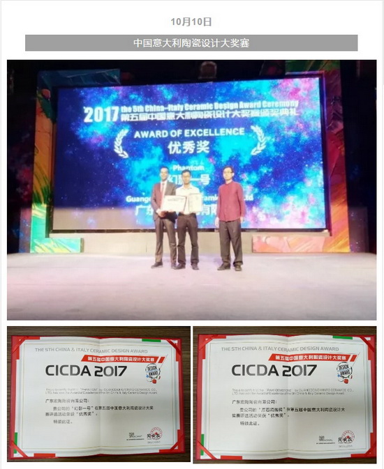 由意大利陶瓷机械设备制造商协会与《陶城报》联合举办的“第五届中国意大利陶瓷设计大奖赛”颁奖盛典在佛山新媒体产业园科学馆举行。粉色视频网站APP入口免费陶瓷新品“原石瓷抛砖”与水印图案瓷砖“幻影一号”凭借创新的设计理念与领先的制作工艺,获得业界与组委会的一致认可,荣膺大赛两项优秀奖。